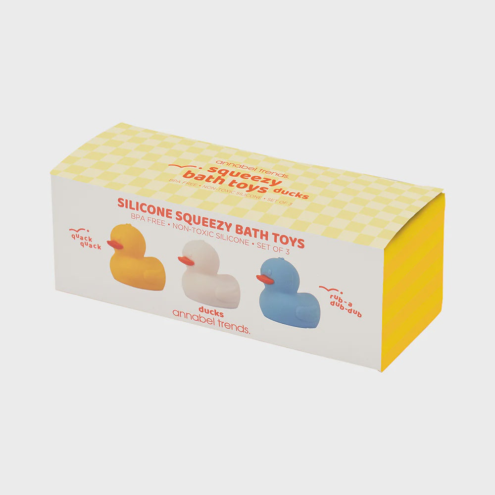 Make a splash with our quacky trio of Silicone Squeezy Duck Bath Toys!