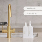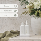 Our gentle Hand Wash cleanses and pampers your hands with natural botanical extracts, leaving your hands smooth and soft. Our Bench Spray is perfect for cleaning countertops, stovetops and other surfaces, filling your kitchen with a fresh scent of Lemon and Honeydew notes.