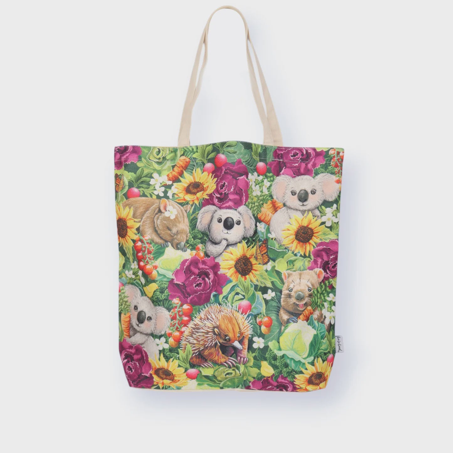 This illustrated shopping bag showcases our Garden Giggles Aussie critters, and doubles as a practical souvenir, suitable for your daily errands. Neatly packaged, this bag offers convenience and ease while shopping. Perfect for carrying groceries or any market finds, combining functionality with artistic charm.