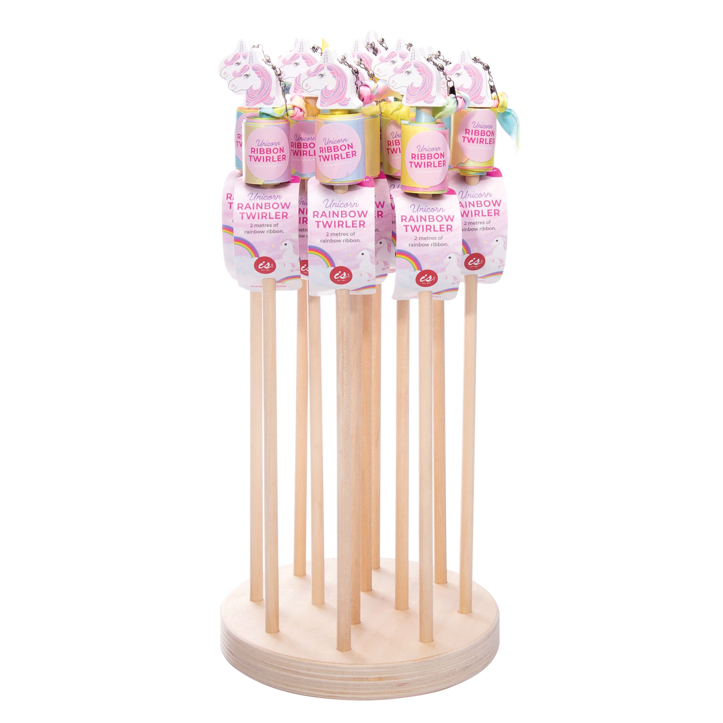 Sustainably sourced Wooden handle & 2m pastel rainbow ribbon.