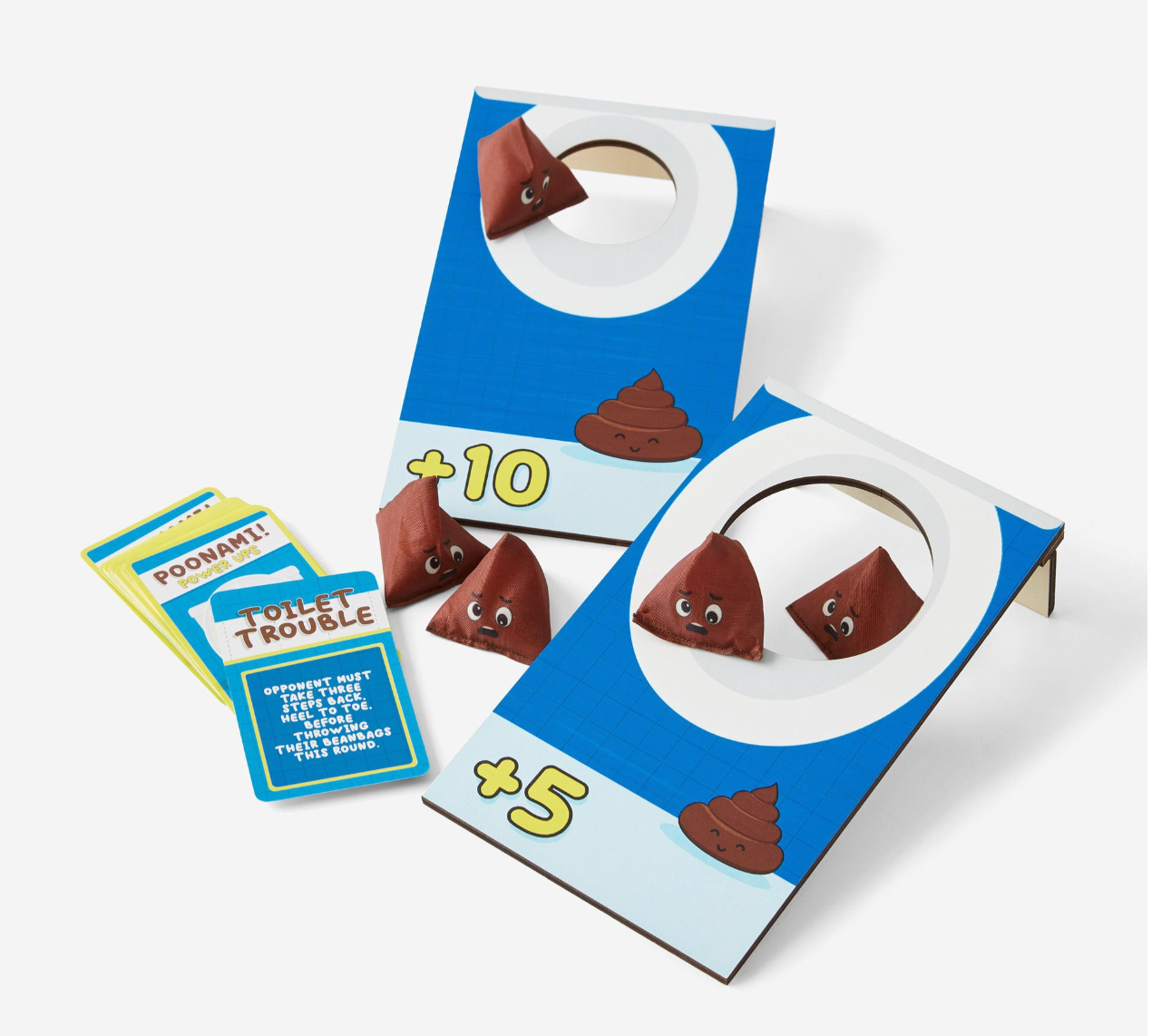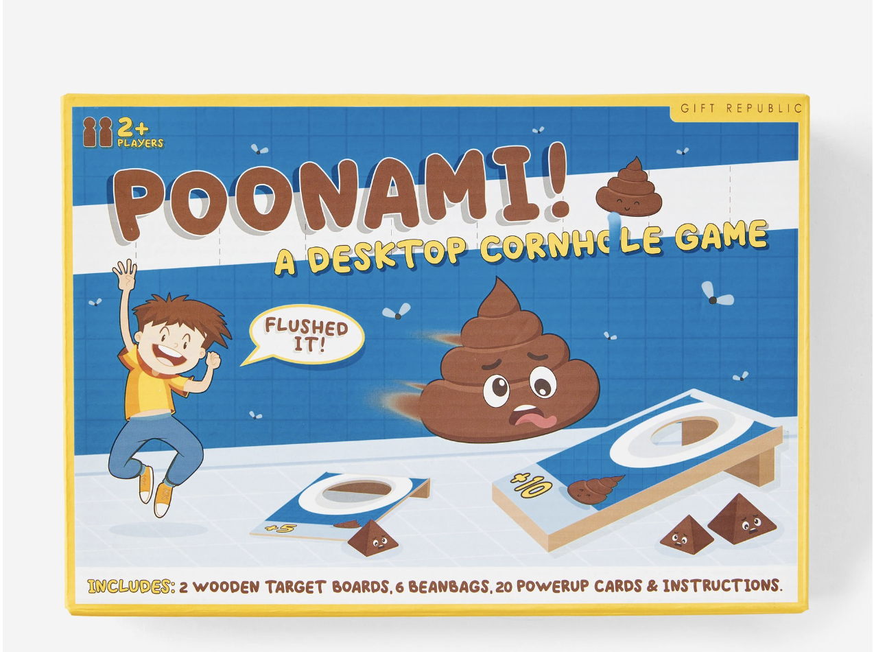 It’s quick to set up, endlessly replayable, and designed to bring on the giggles. Whether you're aiming for the bullseye or flinging blindly in desperation, Poonami is the ultimate potty party in a box. So grab your beanbags, line up your toilets, and get ready to make a splash—because when the poonami hits