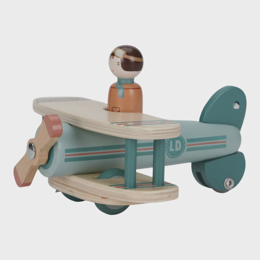 Prepare for take-off with this beautifully crafted wooden toy airplane! Designed for little pilots, this interactive toy sparks imaginative adventures with its smooth-rolling wheels and spinning propeller. The removable pilot figure is compatible with other playsets, including the caravan and school bus, adding even more play possibilities. Whether exploring new lands or soaring through the skies, this airplane is ready for every adventure.