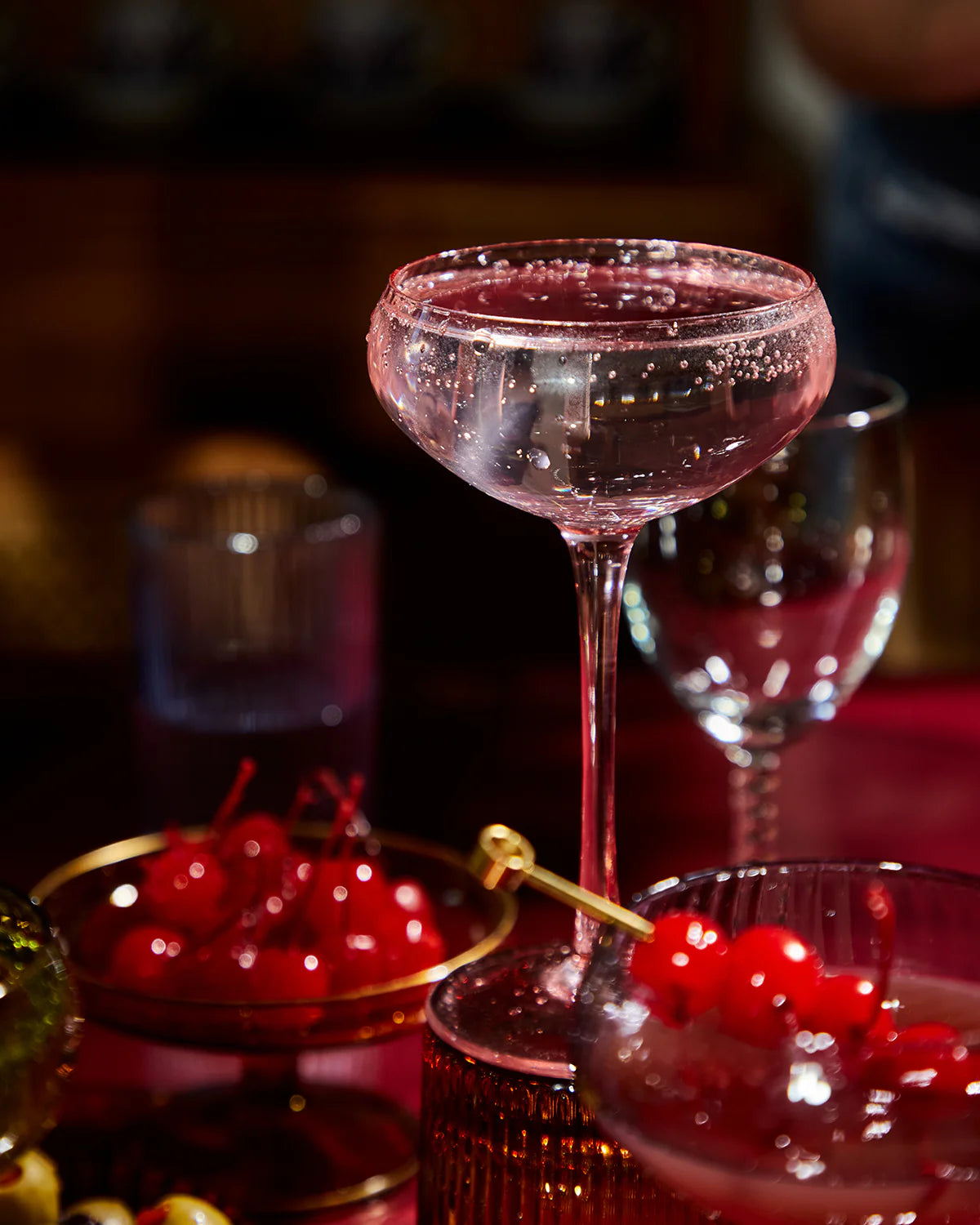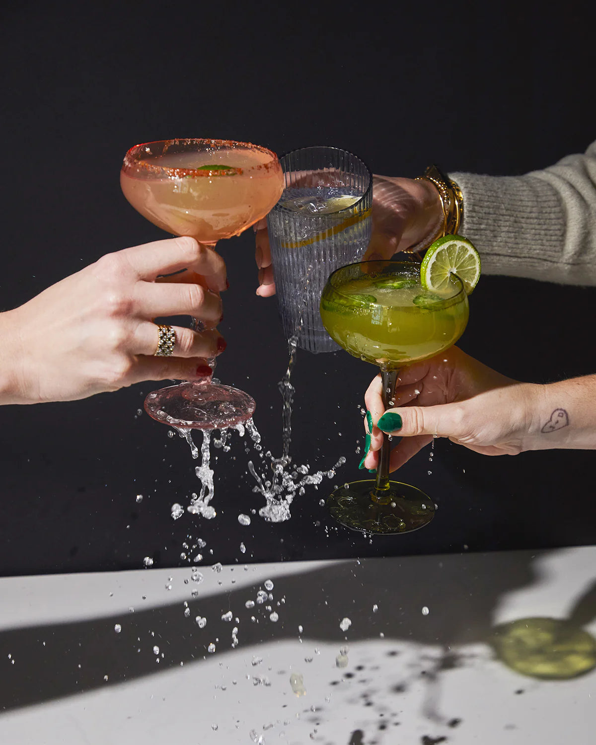 Our coupe glassware features mood-boosting colors and elegant details for the ultimate craft cocktail.