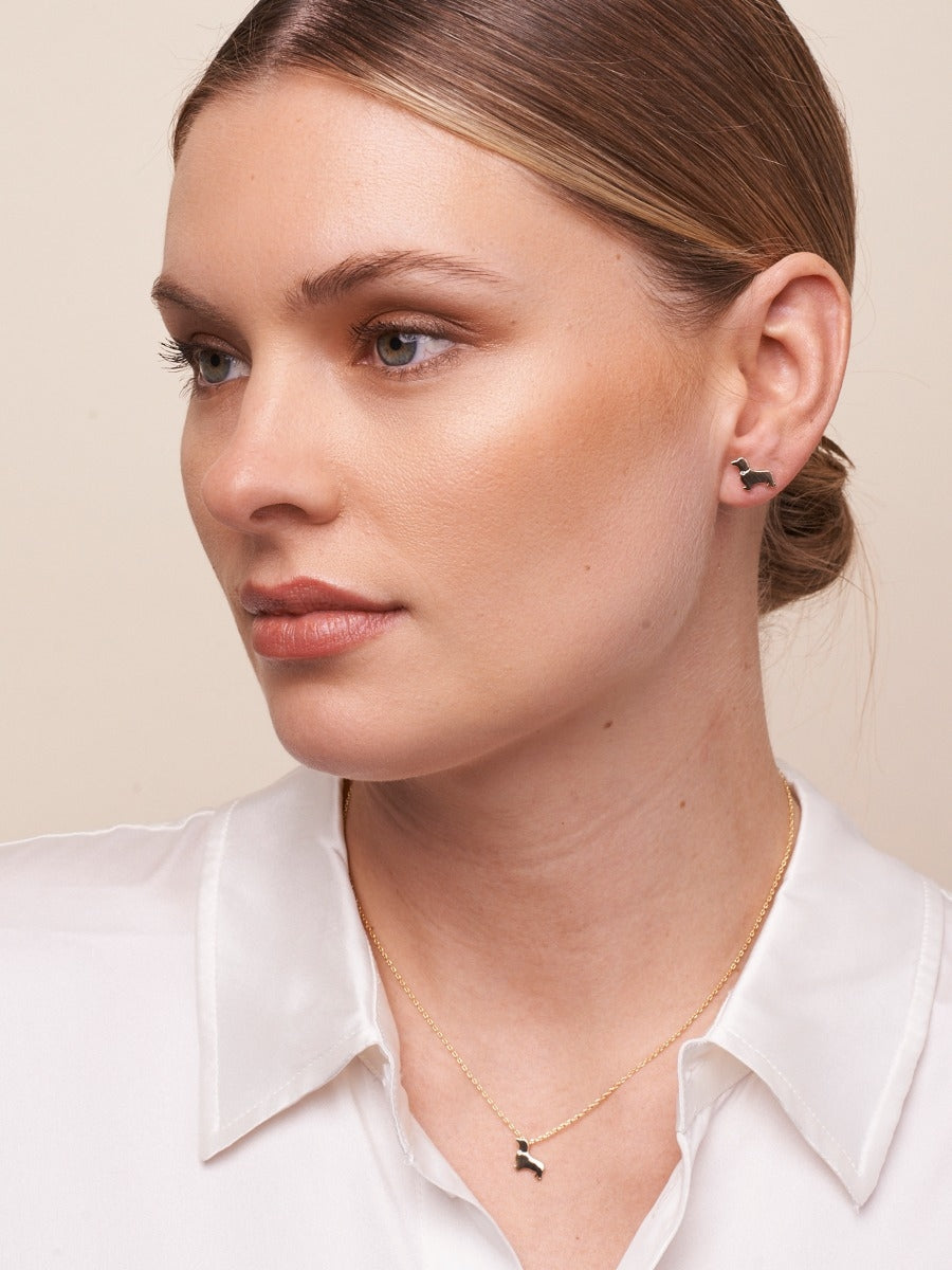 These Dachhound Earrings are available in three colour ways, Gold, Silver, Rose Gold.