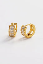 Gold earrings set with baguette-cut stones—perfect for adding a clean, modern sparkle to everyday styling, whether worn alone for a sleek finish or paired with other earrings for a subtle layered effect.