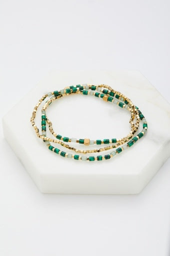 Introducing our Ophelia bracelet an elastic wrap bracelet which can also be worn as a necklace. This bracelet features a combination of neutral and black stones with stainless steel beads making this piece waterproof and the perfect accessory to achieve a layered bracelet look.