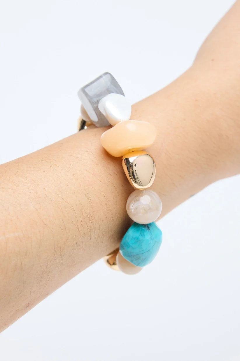 • Chunky bracelet style• Stretchy • Gold and pearl bead detail