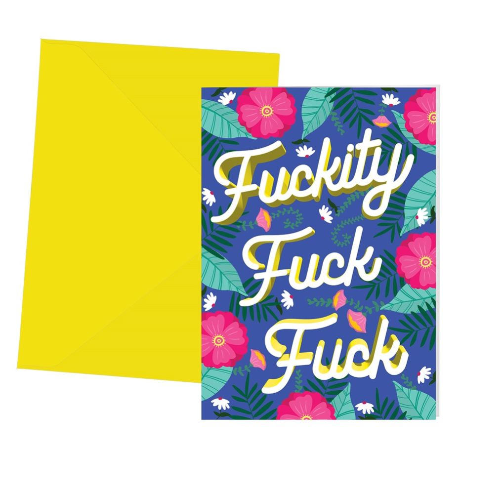 greeting card with illustrations on the front (blank inside).Includes a bright yellow envelope.
