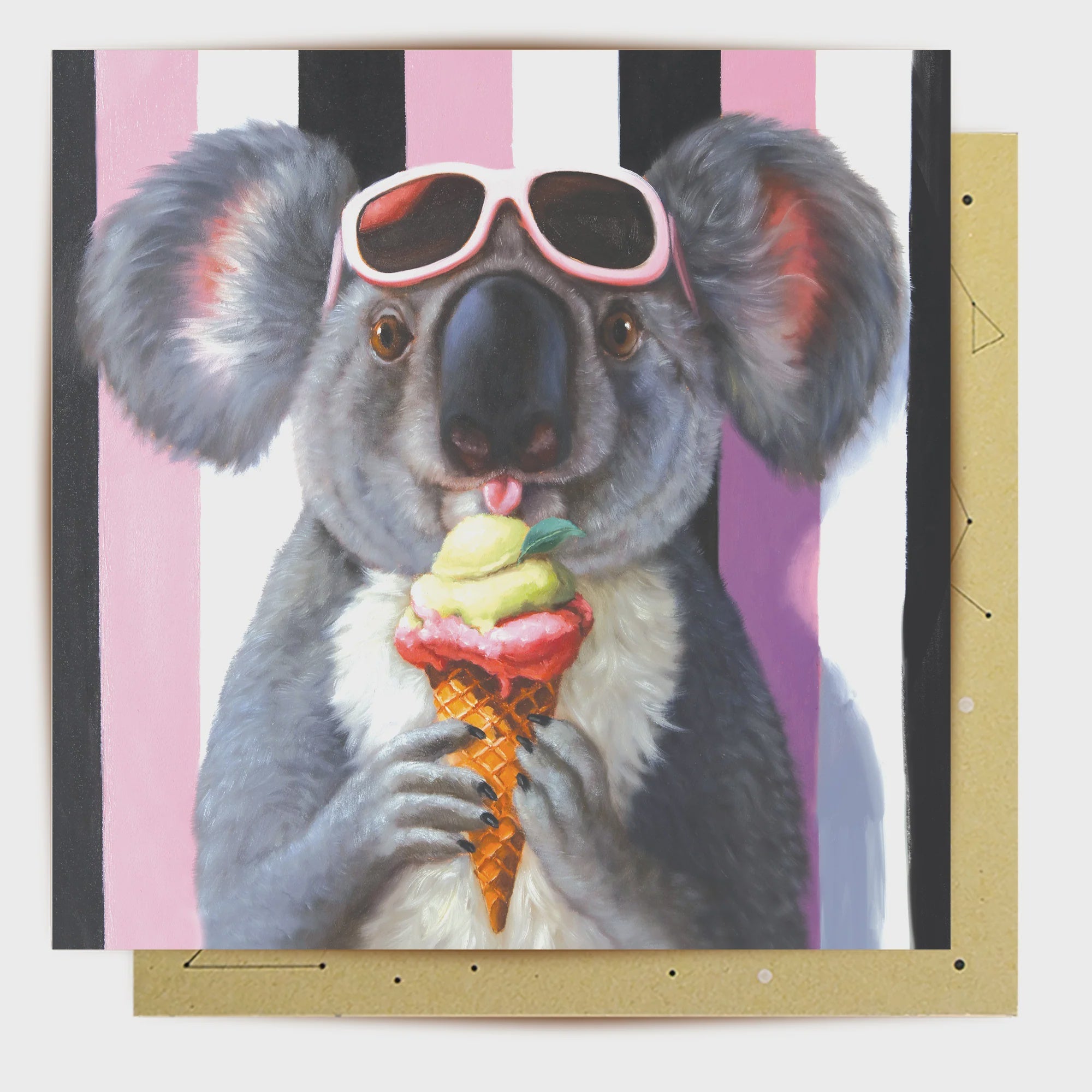 14 x 14 cm greeting card with illustrations inside and out. Includes a kraft envelope.