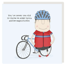 Funny birthday card for him, the cyclist or the wannabe cyclist! ‘You’re never too old to throw on some lycra and be magnificent.’