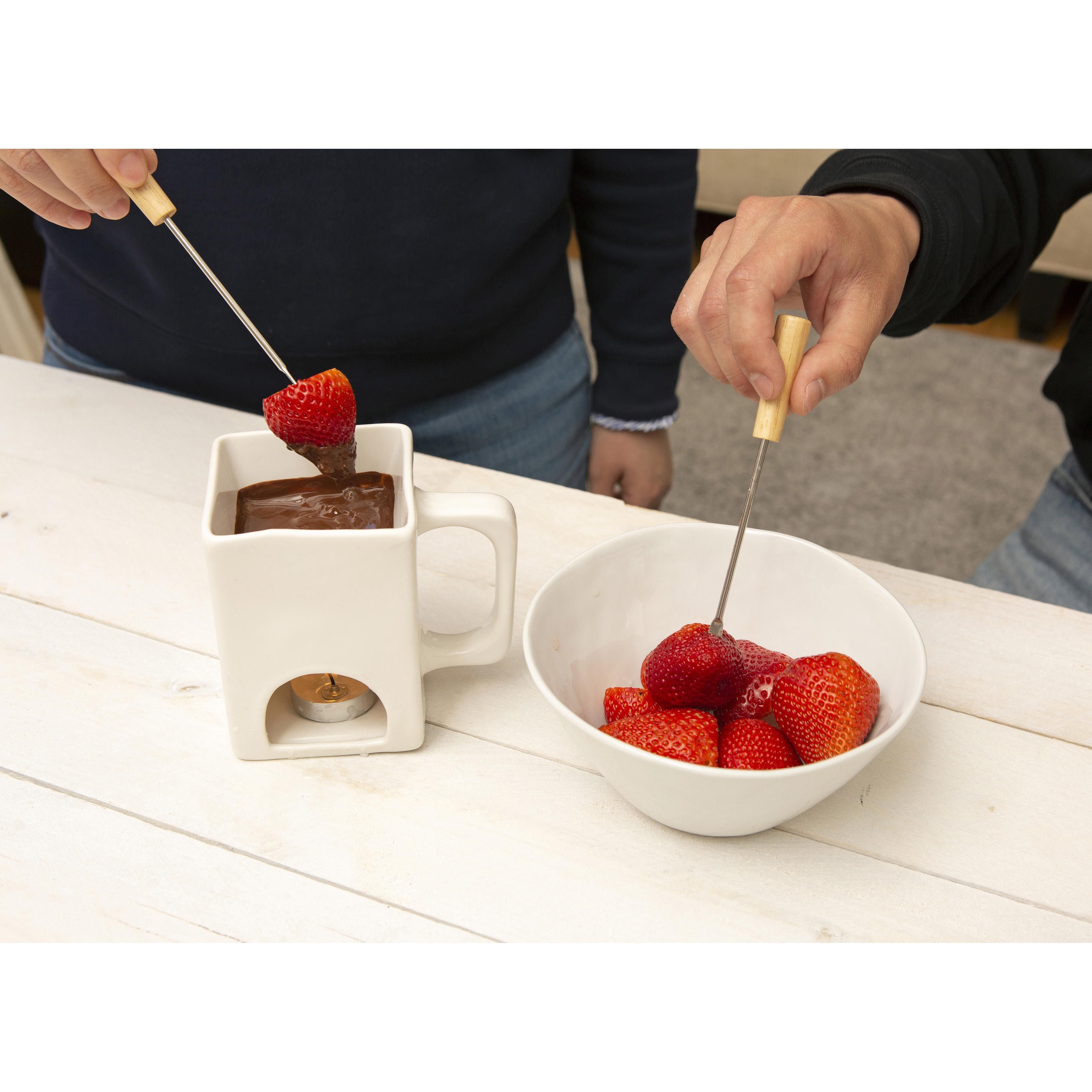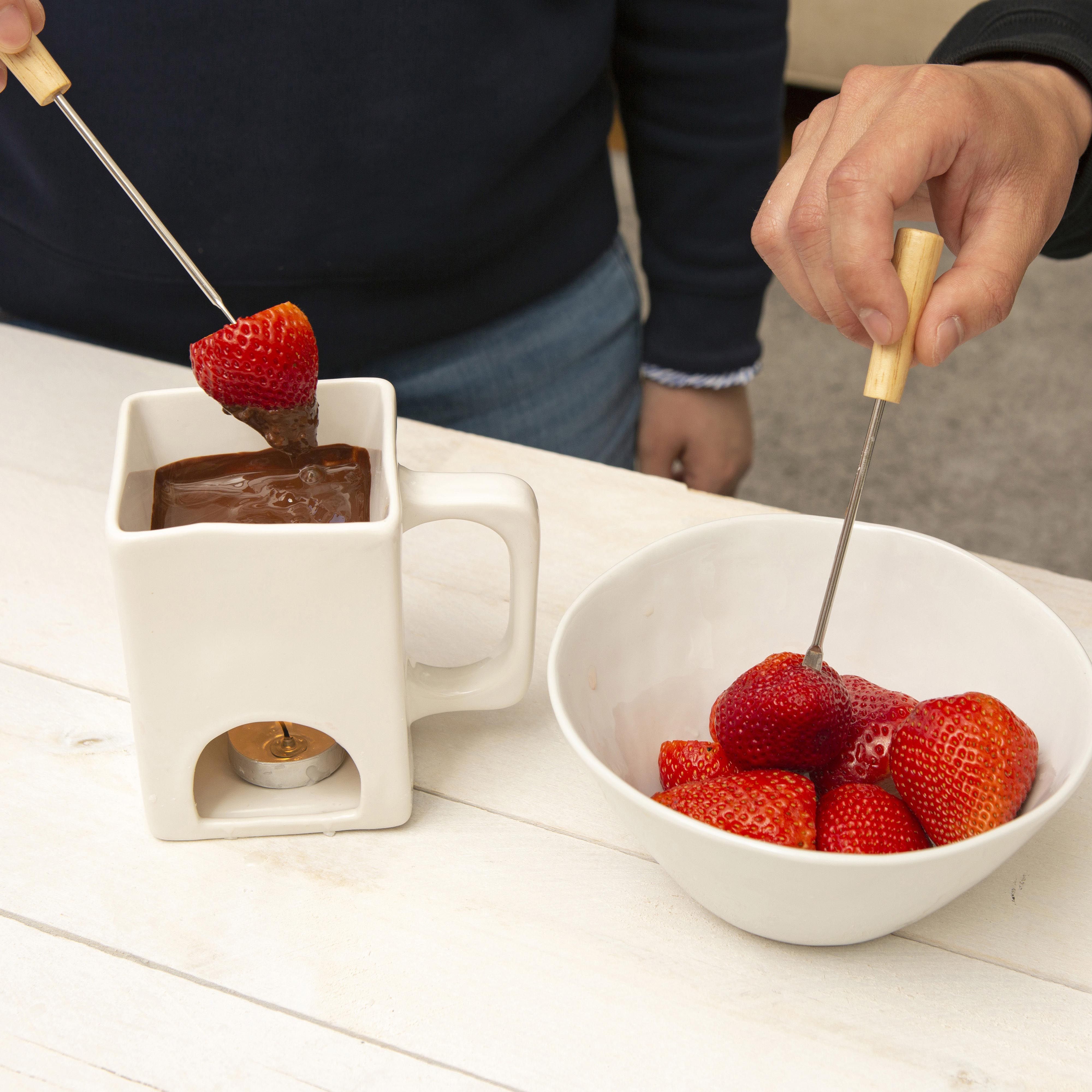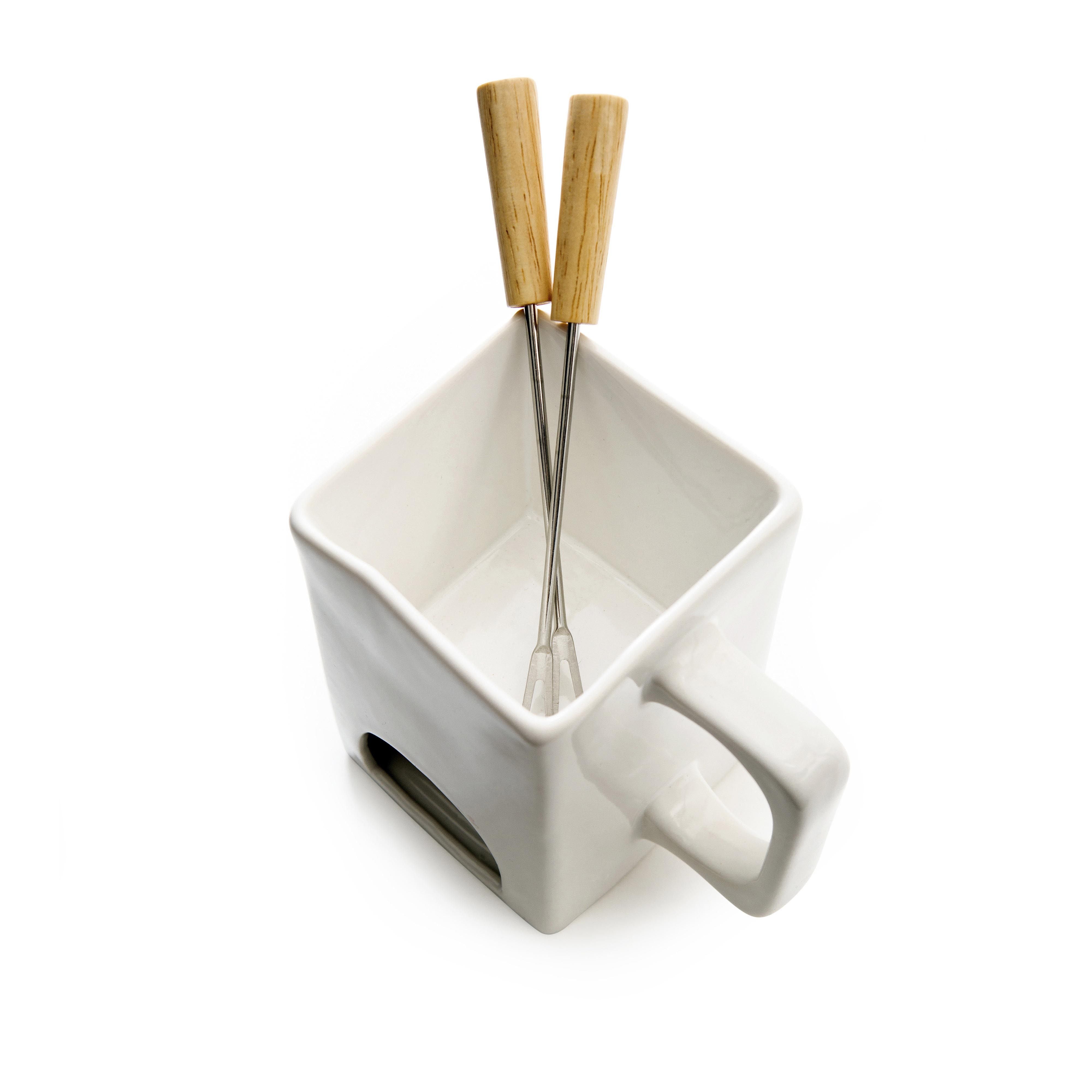 This stylish ceramic fondue mug is perfect for sharing cheese or chocolate, and comes with 2 beechwood, stainless steel sticks.