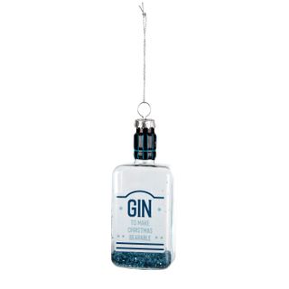 Gin Bottle Tree Orn Glass 4x3x11cm Blue