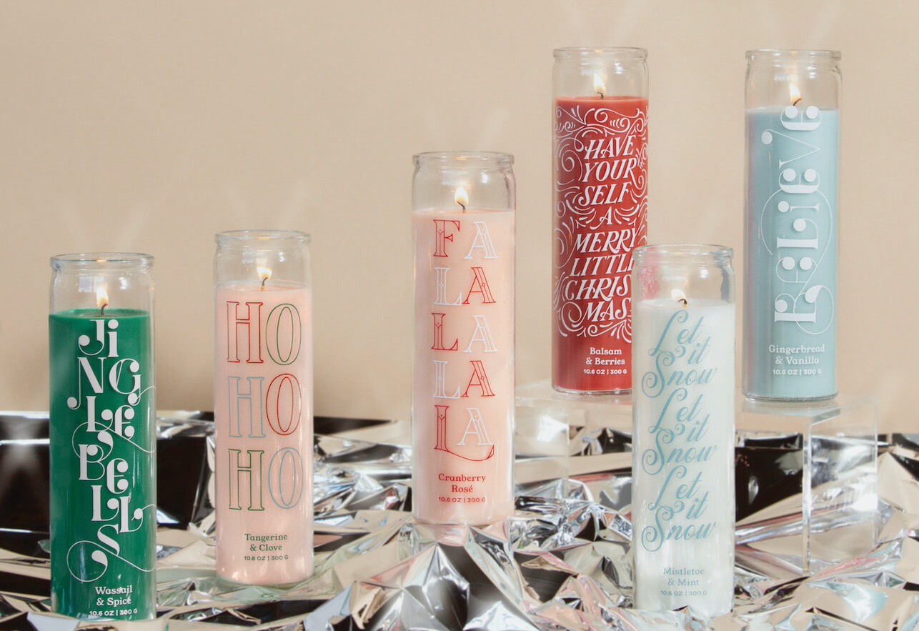 Our fun and modern take on prayer candles, these 10.6 oz. clear glass vessels are filled with colored wax and printed with jolly sentiments. Bring festive fragrances indoors, a candle from our Spark Collection is sure to spark your holiday spirit and leave a lasting smile.