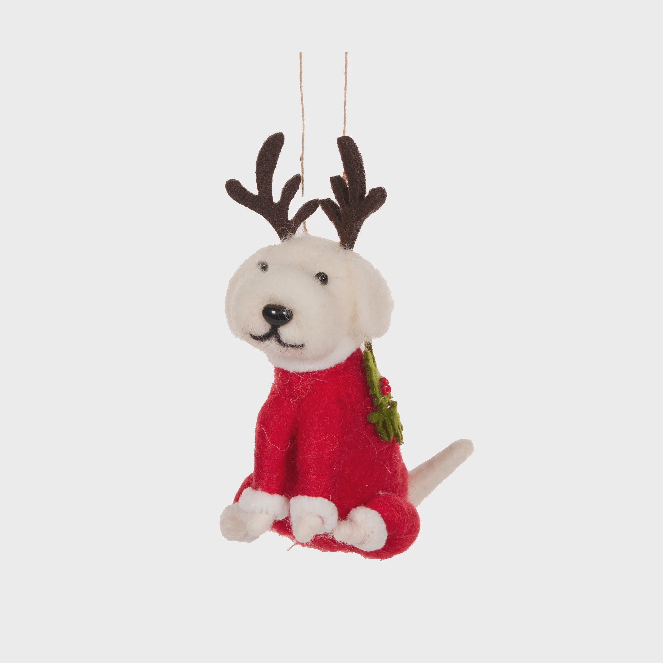 Samoyed with Antlers - Christmas Decoraion, wearing a jacket and antler ears.
