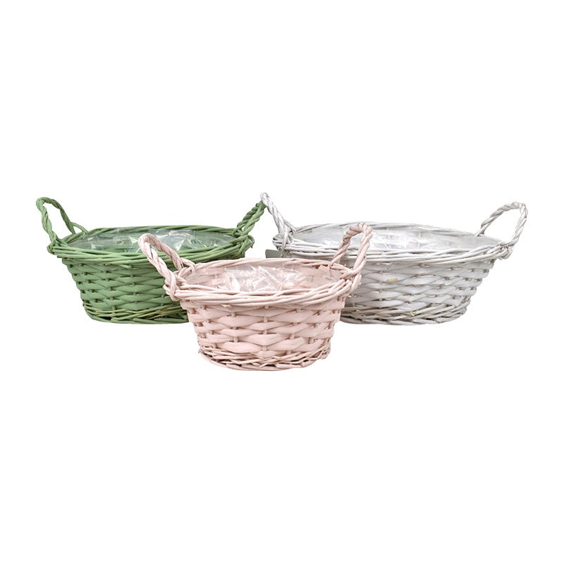 Elle Easter Large Basket is whicker basket painted Green , fully lined with clear plastic and two handles.