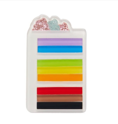 Let them wear cake! This sweet slice of rainbow goodness, inspired by the progress pride flag, is hand-assembled with the finest colourful resins and features glitter resin icing. Let them eat up your looks by adding this tasty brooch to every outfit.