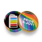 Please note: Designs in the Pride & Joy range have been created using a fabulously colourful selection of bubble resins, representative of the progress pride flag. Due to a combination of the nature of this bubble resin, the laser cutting process, and the arrangement of the pieces to create a rainbow effect, there may be small black lines visible between layers of the bubble resin. This is a normal and unavoidable part of the creation of these pieces.
