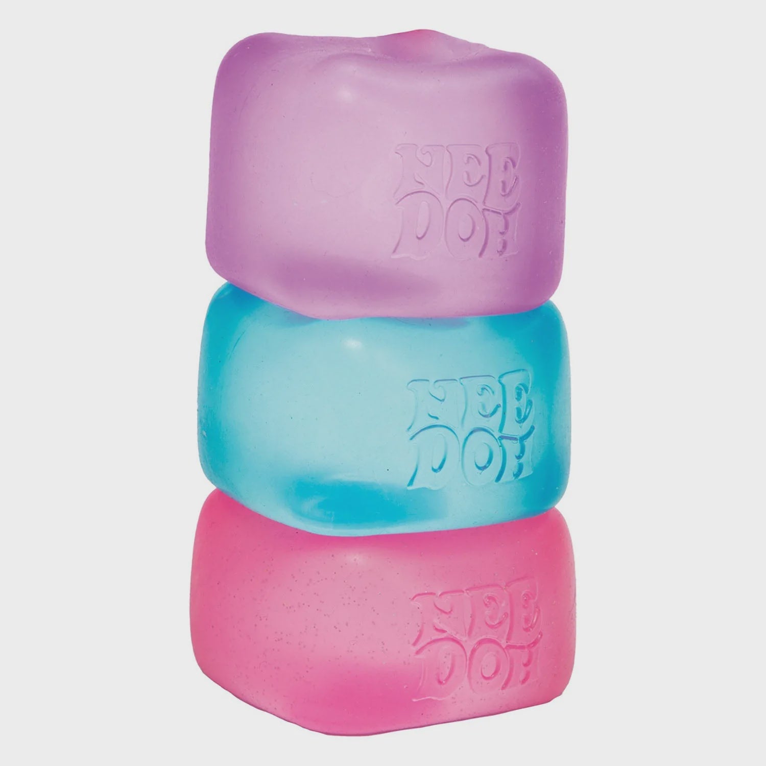 The groovy gratifying NeeDoh is now available as a cool square, semi-transparent ice-like look! NeeDoh Nice Cube still has all the irresistible power to find your best mellow and chill and always returns to its original shape, but now it has a groovy goo filling that feels soft with a slow squish and firm when fast squished. One sweet squeeze turns into many for a soothing sensory sensation in the office, classroom, car, at home or anywhere at anytime. Available in 3 assorted colors.