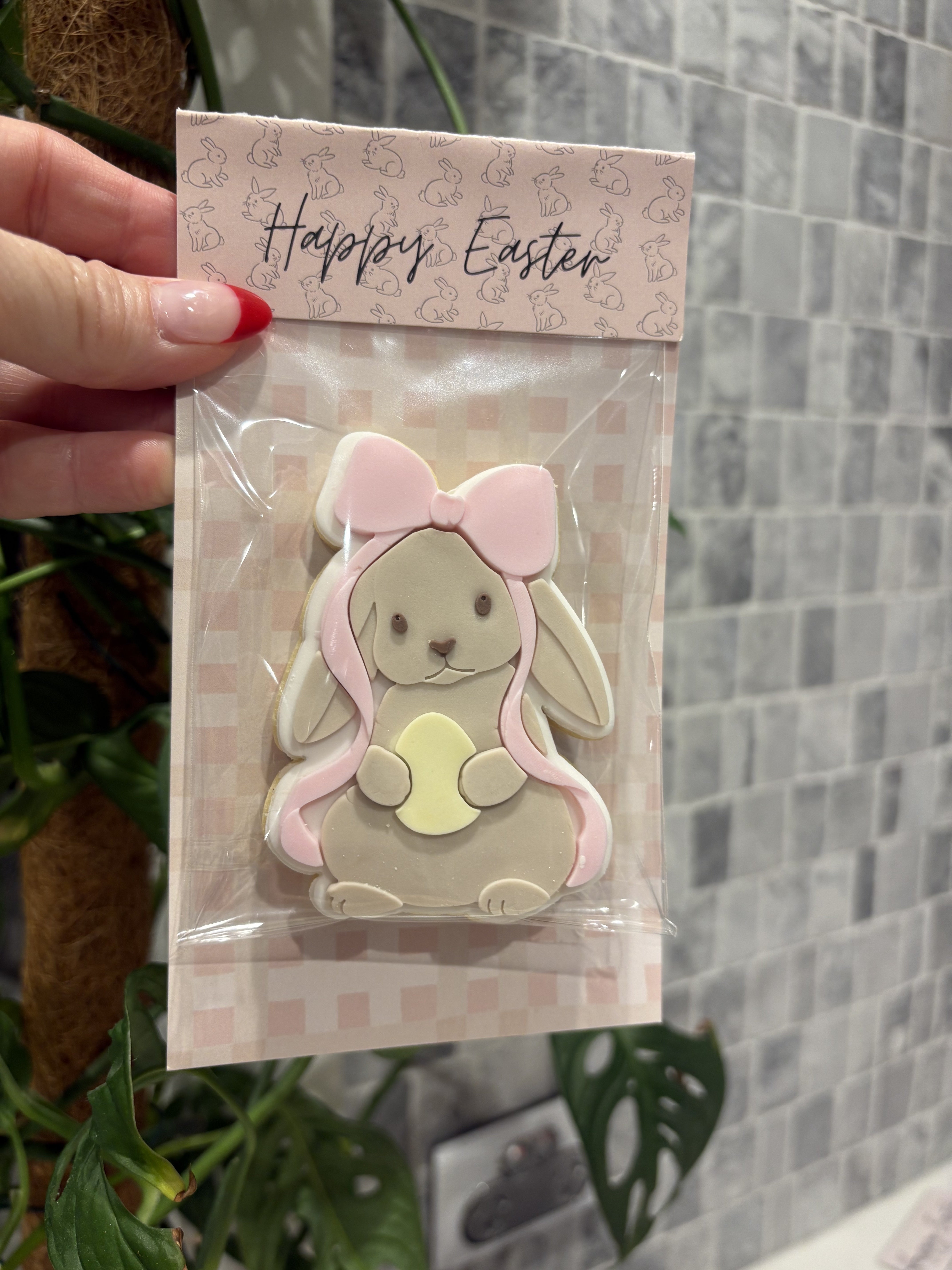 Vanilla Cookie with Fondant - Easter Bunny holding egg with a ribbon bow