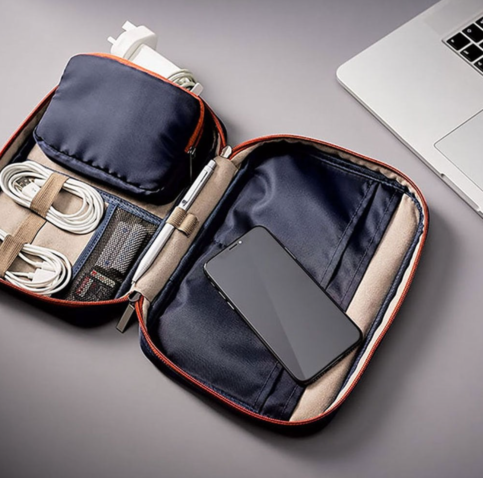- Portable carry case to store tech and accessories