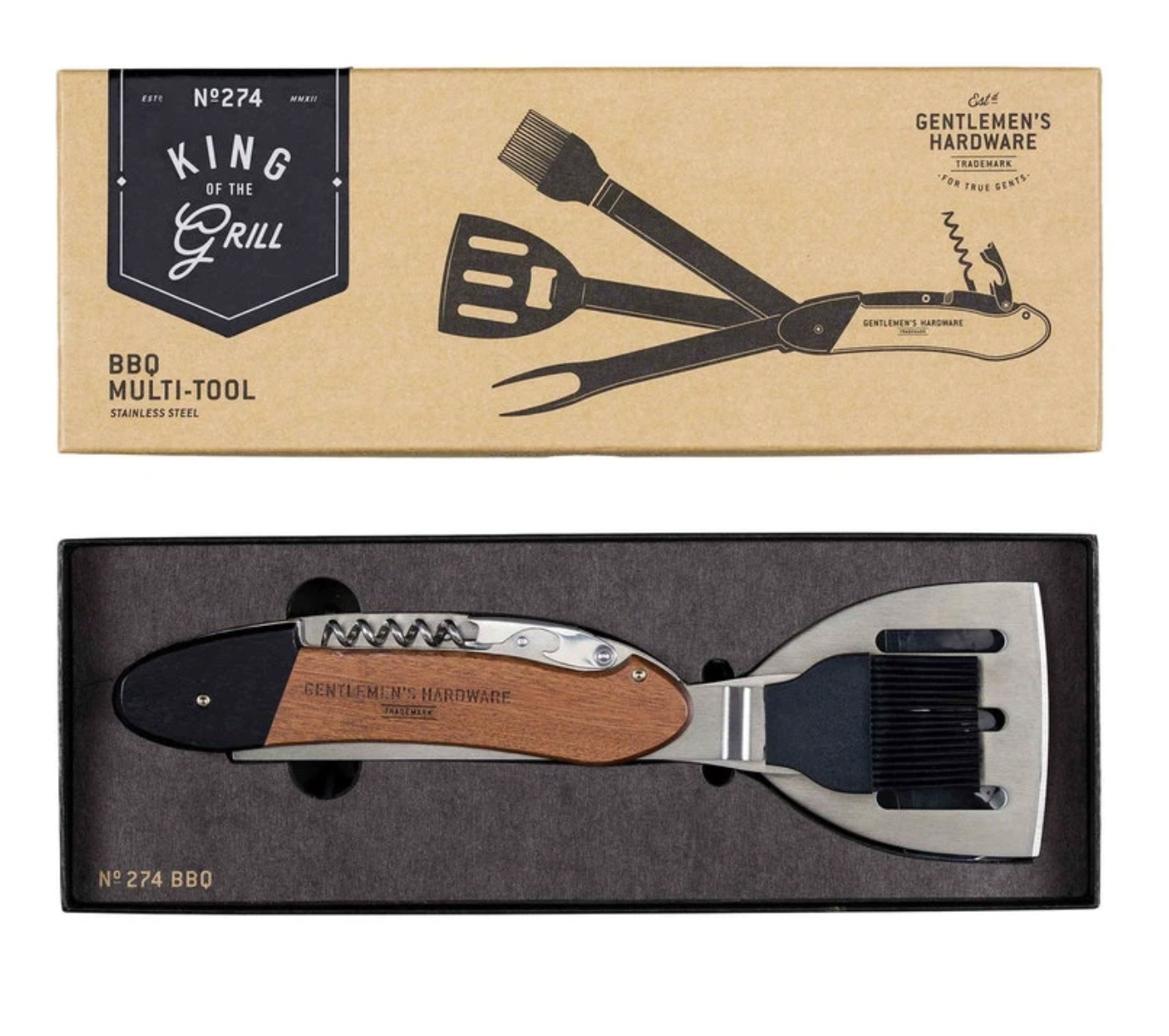 For skills on the grills, the Gentlemen's Hardware BBQ Multi-Tool can flip a burger, spear a sausage and pop a bottle in a trice. The integral spatula, basting brush, fork, bottle opener and corkscrew will always come in handy at a spontaneous cook-out or beach BBQ, with the spatula and fork sliding apart for easy-use. The robust wooden handle and stainless steel utensils make this a hard-wearing addition to your great-outdoors kit. Comes in a stylish branded box.
