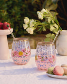 Each tumbler is a work of art in itself. The delicate glassware is adorned with Murilo Manzini's captivating illustrations, depicting blue filigree elements, ribbons, florals and sweet treats. The meticulous attention to detail, combined with the addition of shimmering gold foil accents, creates a truly enchanting set of glasses.