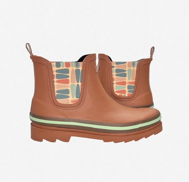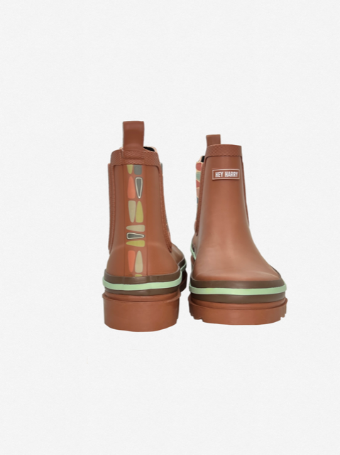 Everyday boots, just got even better.... The Hey Harry natural rubber ankle boots, are 100% waterproof and have the extra detail on the heel and side grips that really dress up your boots. Comfort and warmth is due to the very soft upper with a reinforced toe for durability. The sole has a reinforced shank and the black inner lining is nylon for warmth. These are the prefect boot from rain days, to gardening, to music festivals, and standing on the side lines watching the kids sport.
