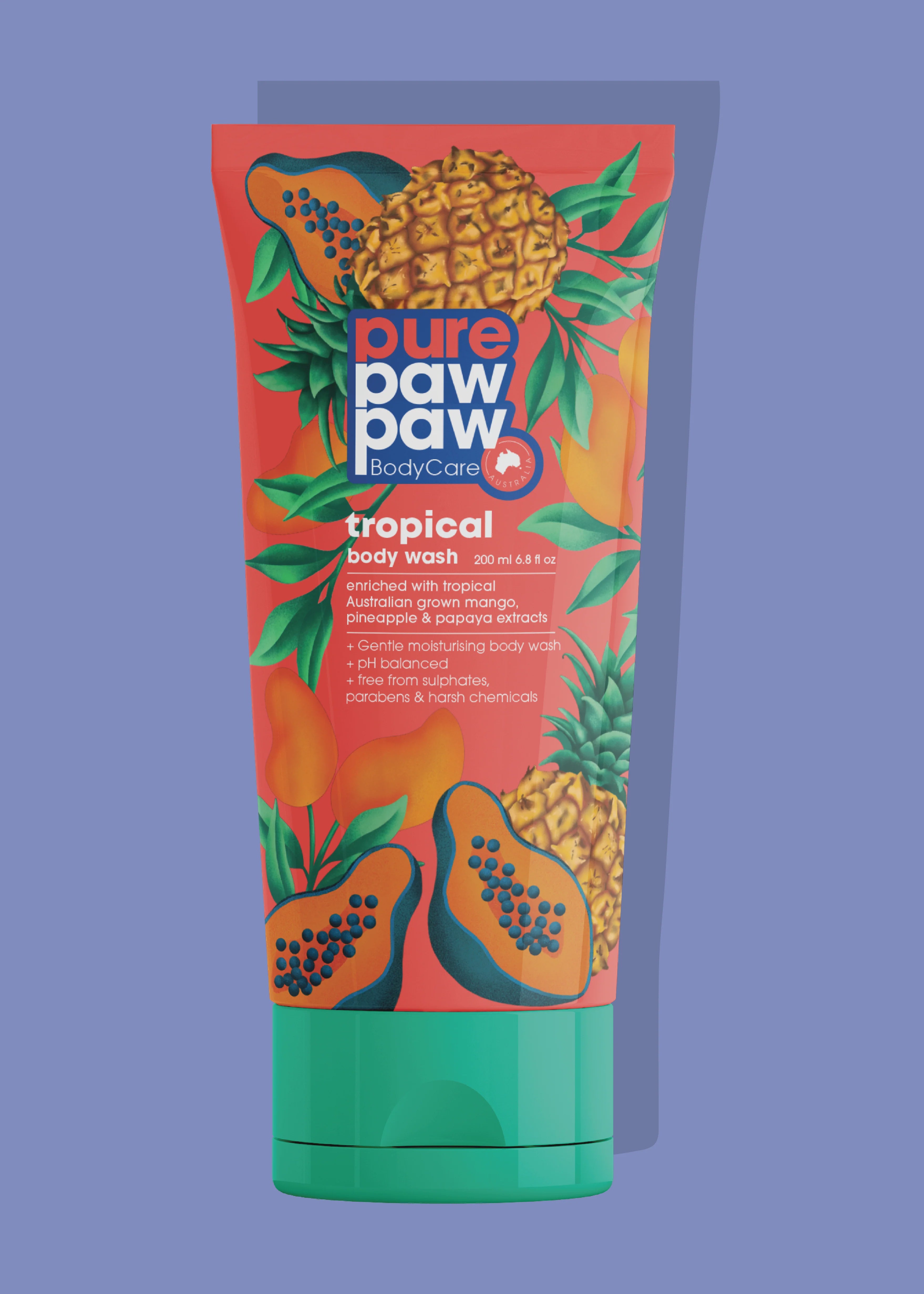 Nourish your skin with this deeply cleansing body wash enriched with three tropical-strength Australian extracts of mango, pineapple and papaya, and bring life back to dry and dull skin. For best results, follow with Pure Paw Paw Body Care ‘tropical’ lotion to moisturise the skin. Suitable for all skin types.