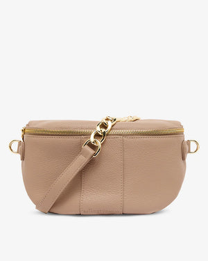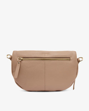 The Arlington Milne Zara Sling Bag is crafted from premium leather and features light gold hardware and an embossed logo. The bag offers three strap options, allowing you to create your own signature style. The top front zipper closure opens to reveal our signature hot pink twill lining and an interior zip pocket. The bag also features a secure zipper pocket on the back face.
