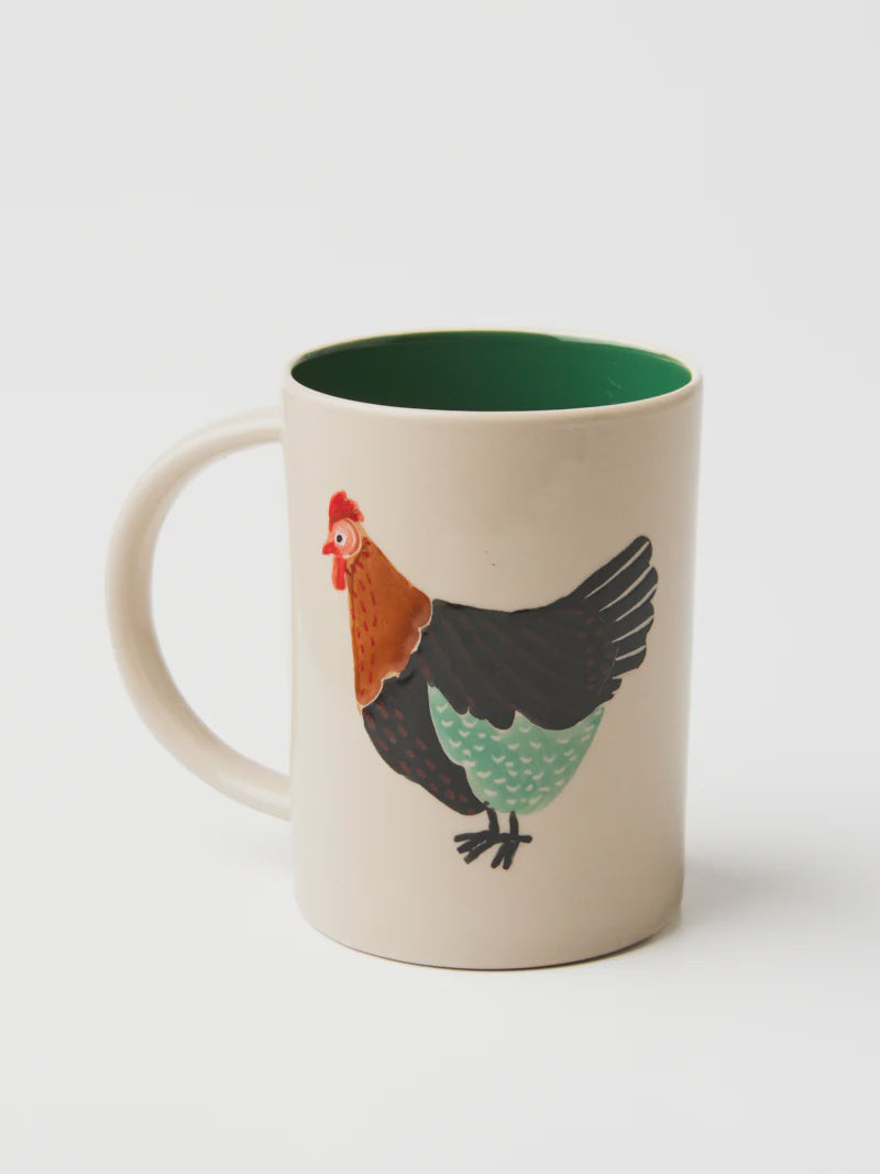 A hand-painted chicken in striking blues adorn this generously sized mug with a vibrant blue interior. The earthenware Cornflower Mug transforms morning rituals into playful moments, reflecting our studio's Sydney design aesthetic and our artisans' Vietnamese craftsmanship heritage. Pair with the other pieces in the coop range for a charming table spread.