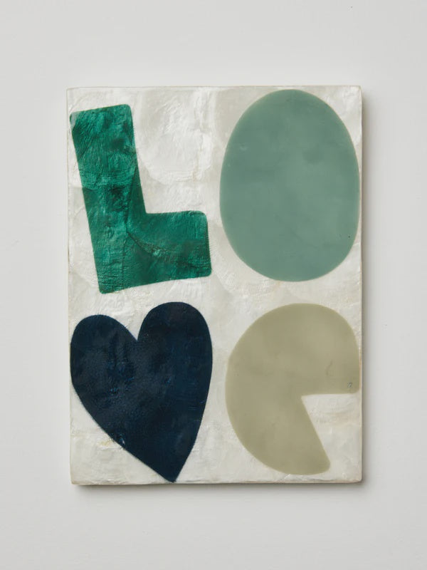 The word "LOVE" is beautifully incorporated into this design, reminding us of the power of love in our lives. With its bold and expressive typography, it serves as a daily affirmation that resonates with everyone who encounters it and brings a smile to your face every time you pass this capiz wall tile in your home.