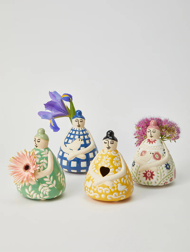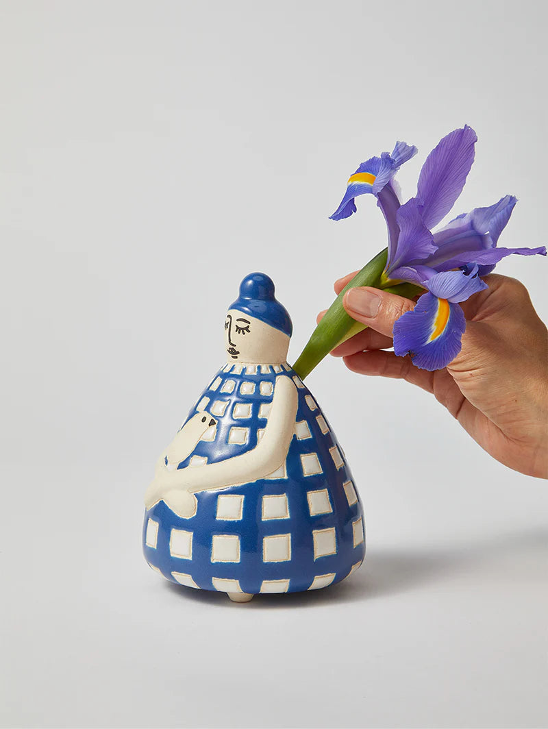 Introducing our sweet Nonna Blue Check Vase - a loving tribute to the cherished matriarchs in our lives! Handmade and hand-painted with care, this vase exudes warmth and charm. Perfect for flowers, its sweet patterned body sets off blooms beautifully, adding a touch of fun to any space. Inspired by our beloved Nonnas, Ya Ya's, Aunties, and family matriarchs, this vase is a heartfelt ode to their care and charm. Elevate your vignette with the Nonna Blue Check Vase and infuse your home with love and nostalgia.
