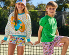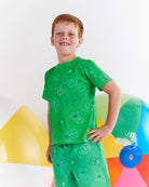 We've been lucky enough to work with iconic Australian artist and our personal hero Ken Done on two smash hit bedding and home collections. And we are jumping for joy to now extend Ken Done into our apparel for our third, and biggest, bestest drop yet! The Kip&Co x Ken Done Koala Cuddles Green Organic Cotton T-Shirt is an everyday staple, jazzed up with Ken Done colour. Made from 100% organic cotton jersey this comfy tee is cuteness overload with the sweetest little smiling koalas in shades of blue, green and purple on a bright green base.