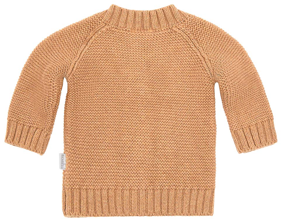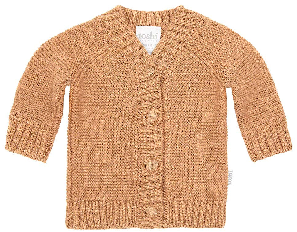 The sumptuously soft Toshi Organic Baby Cardigan Andy is crafted from the finest quality certified 100% organic cotton yarn. Organic certification ensures the cardigan is gentle on your delicate baby, as well as our precious environment. A melange yarn offers a level of refinement to this cosy and nurturing Toshi baby accessory. With a textured reverse knit and covered buttons, the styling is classic and yet the feel is contemporary. Cardigan Andy is designed to keep precious babies warm and cosy during our cooler months. The colour of this cardigan is Ginger, an earthy and rustic gender-neutral hue.