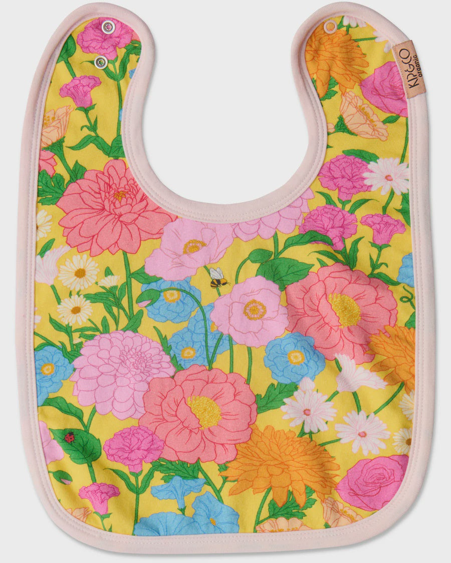Our baby bibs are a daily essential, bursting with colour and fun. Best of all our baby gear is free from nasties for a healthy, planet friendly choice. Made from gentle and soft organic cotton jersey the Arctic Organic Cotton Bib features a tufted chenille embroidered white polar bear on a blue base with orange binding and reverse.