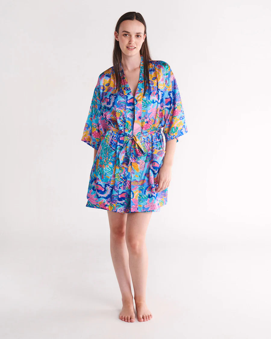 Kip&Co x Ken Done Reef Garden Satin Robe