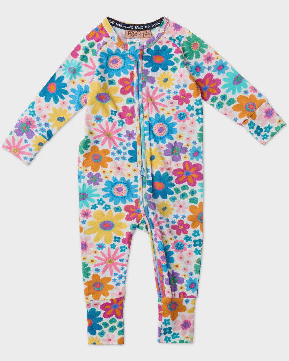 Rainbow Flowers Organic Long Sleeve Zip Romper