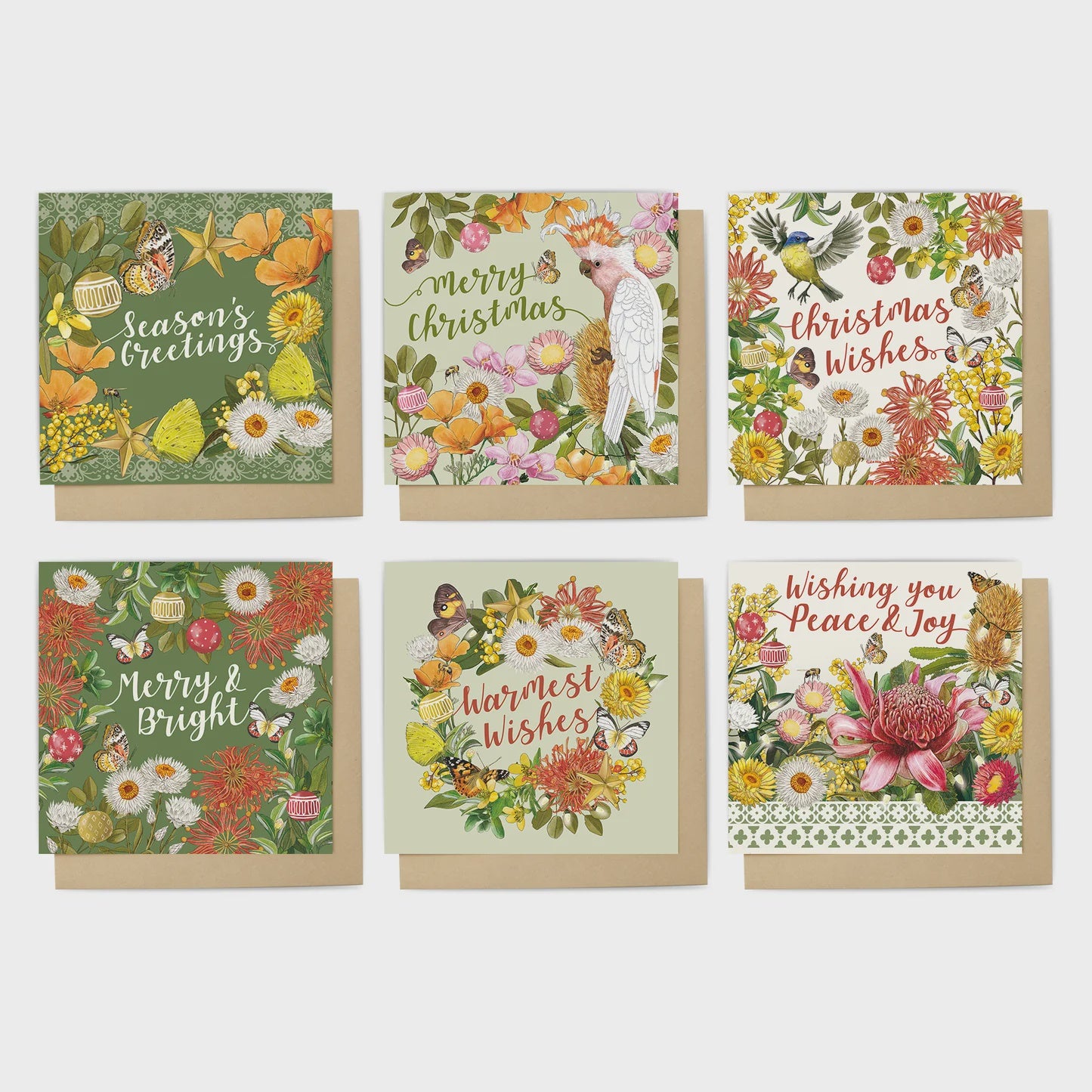 Celebrate the festive season with the stunning Australian Blooms in La La Land's Botanical Bloom Christmas Card Set! This boxed set features six unique, native-inspired Christmas card designs by in-house artist, Laura Ramos. Each card showcases unique designs, bringing joy and a distinctive flair to your holiday greetings.