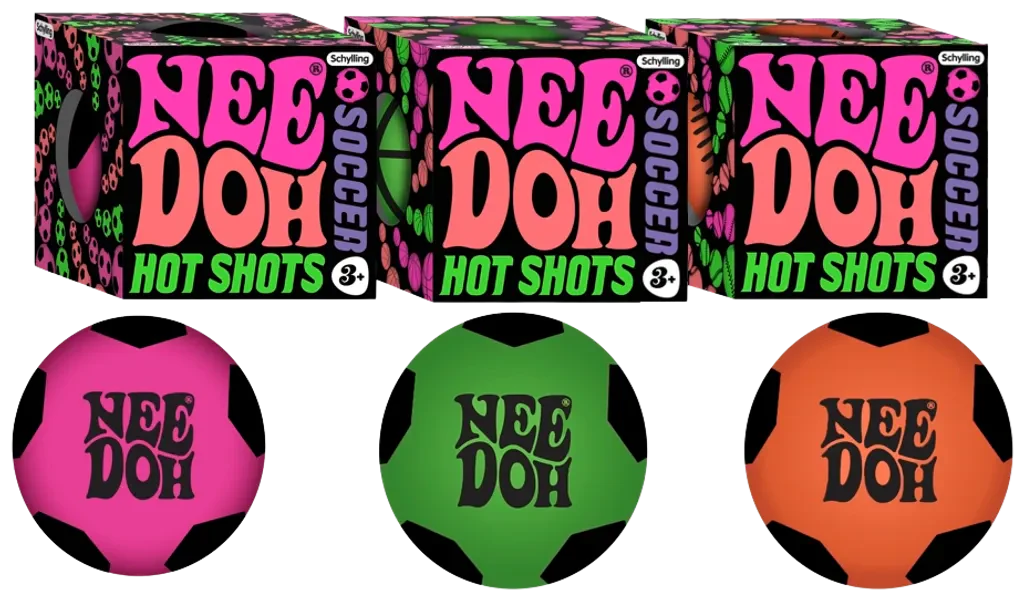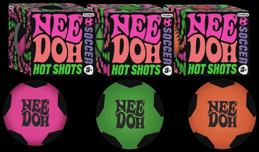 These NEW NeeDoh Hot Shots Footballs are awesome. Each NeeDoh ball is filled with a non-toxic, dough-like compound that always returns to its original shape. Small enough to fit in the palm of your hand and great enough to find the squeeze that will get you feeling groovy fast.