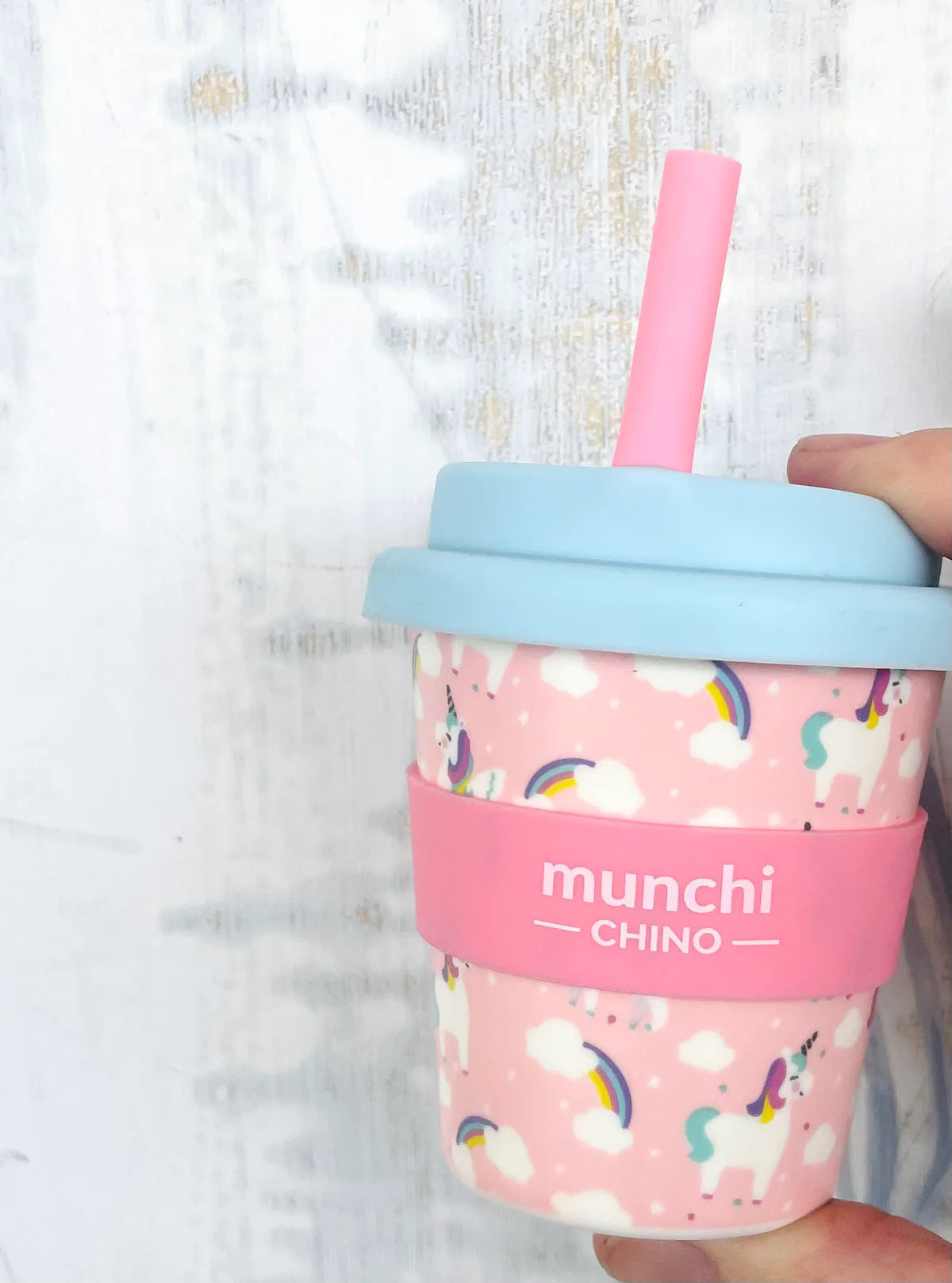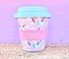 Check out our Unicorn design 'munchi chino' mini cup for the little ones. Perfect for babyccinos! Includes pink straw!