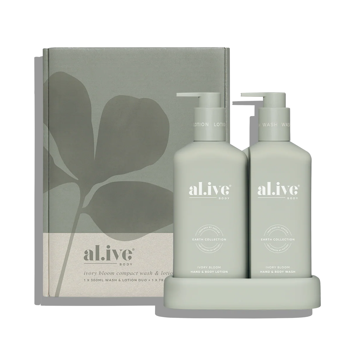 A limited-edition Compact Bathroom Duo, pairing a 300ml Hand & Body Wash and 300ml Hand & Body Lotion in a slimline, interlocking design, created for a more space-conscious bathroom setup. The limited-edition Ivory Bloom scent combines a soft white-floral fragrance, bringing a calm, considered feel to everyday routines.