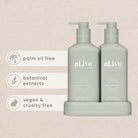Inspired by white florals, the limited edition Ivory Bloom scent feels soft and calming, settling quietly on the skin and in the space around you. Finished in a soft sage colourway, the compact bottles are designed to sit beautifully together, bringing a sense of order and quiet luxury to your bathroom.