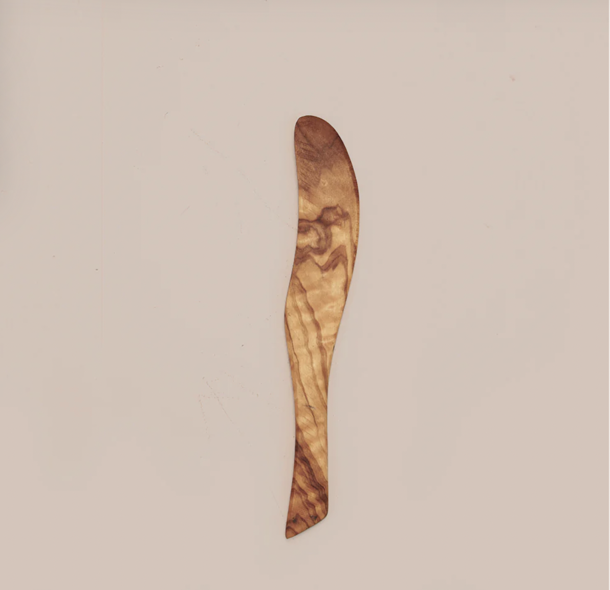 Handcrafted using natural olive wood, each piece in our collection of olive wood kitchen and tabletop pieces, including this olive wood butter knife, is hard, durable and non porous. Each knife is unique because of both its hand crafted character and the striking knots and grain found in the olive wood. Each piece is kiln dried for durability and becomes darker and richer in colour as it ages.