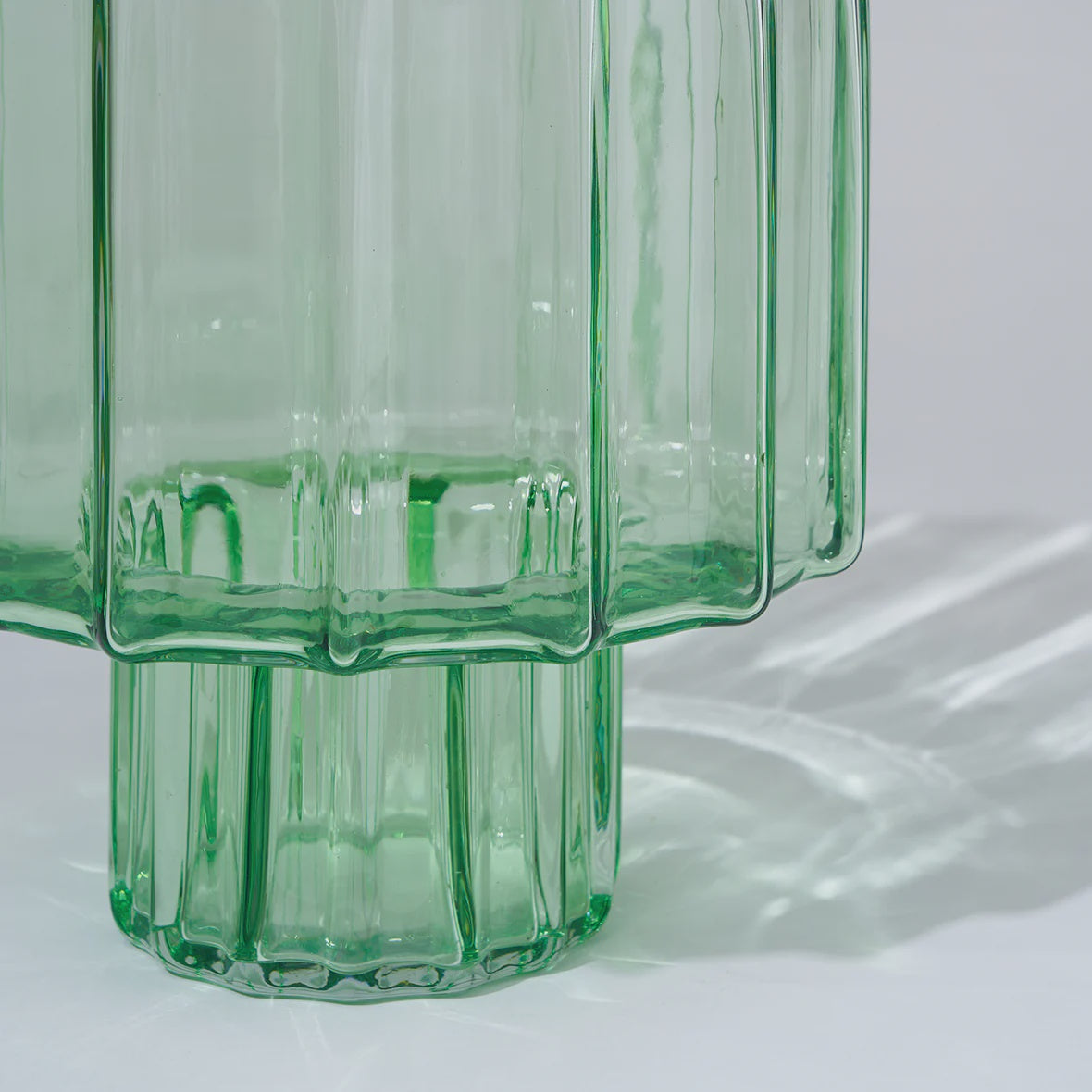 Classic form meets contemporary cool. This large-sized urn-style vase in rich, translucent green glass adds a sculptural touch to any space. Perfect for statement blooms or standing solo on a shelf or table.