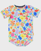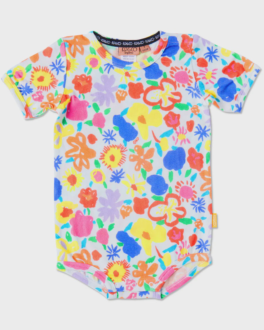 Spreading Ken Done joy to our littlest kippers! We're as proud as punch to collaborate once again with the iconic artist, bringing you a treasure trove of happiness that beautifully embodies the essence of Ken Done and his work. The Kip&Co x Ken Done Summer Floral White Organic Short Sleeve Romper features an array of hand illustrated summery fresh florals, bright and joyful in a mesmerising rainbow of colours on a white base. Made from wonderfully soft organic cotton, this baby romper is free from any nasties, making it a safe choice for your baby and our planet.