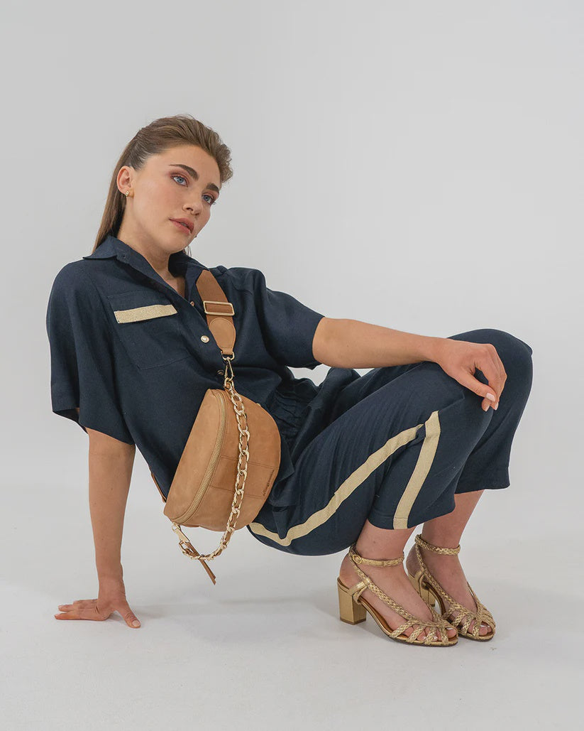 The Arlington Milne Zara Sling Bag is crafted from premium leather and features light gold hardware and an embossed logo. The bag offers three strap options, allowing you to create your own signature style. The top front zipper closure opens to reveal our signature hot pink twill lining and an interior zip pocket. The bag also features a secure zipper pocket on the back face.