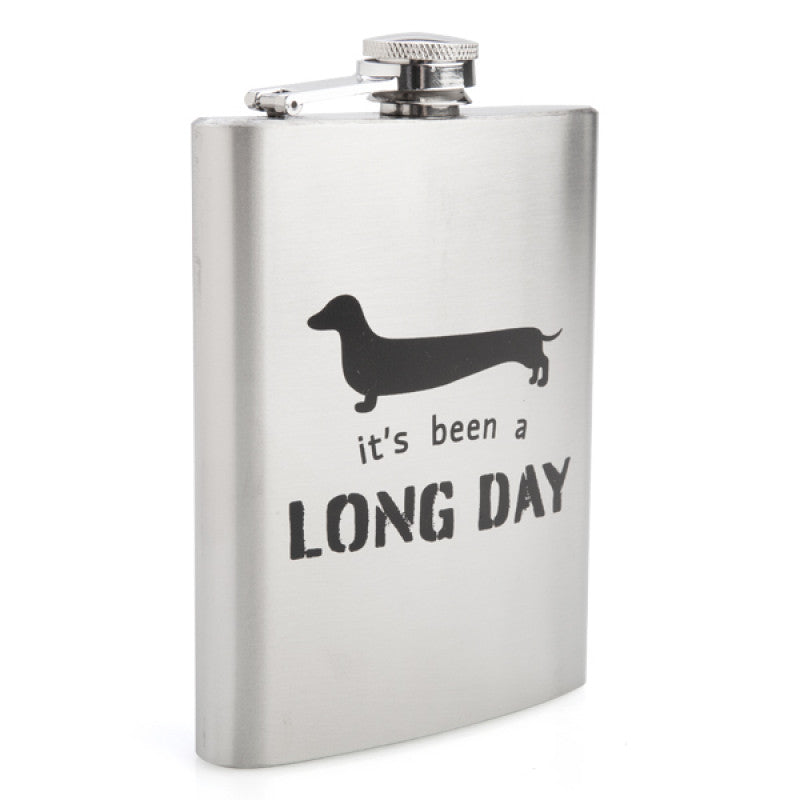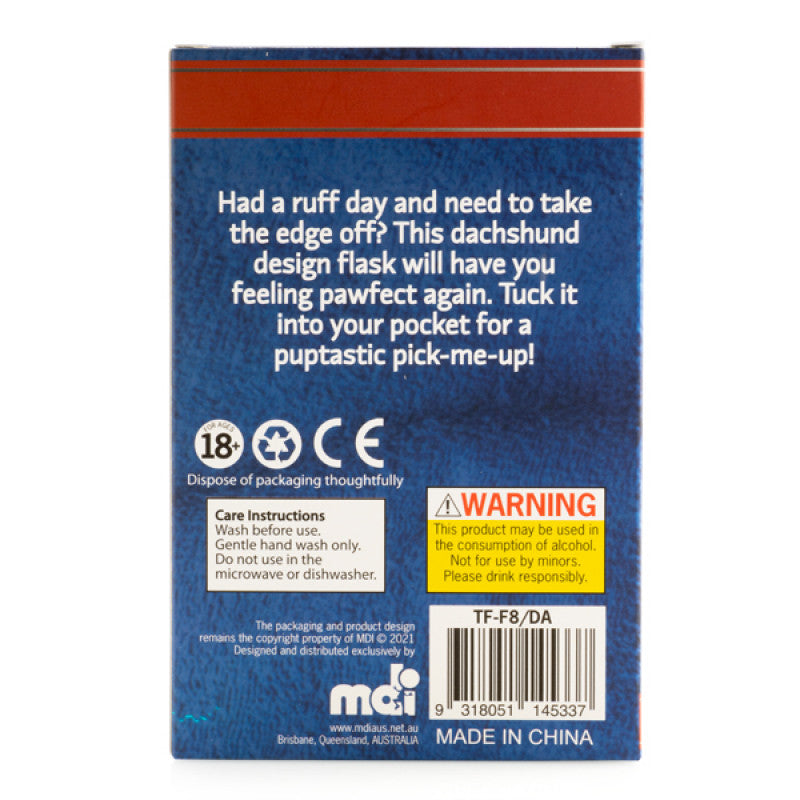 - Stainless steel flask featuring everyone's favourite sausage-shaped pup