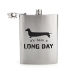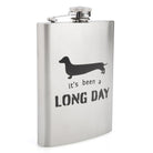 - Punny black decal reads 'It's been a long day' under a dachshund silhouette