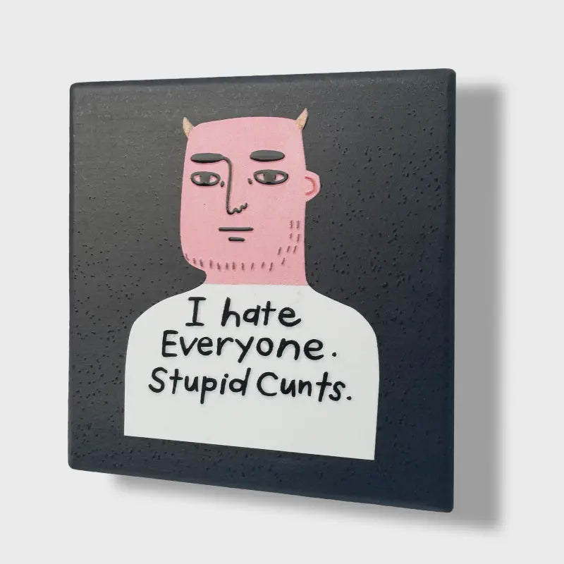 This no-bullshit slab of ceramic rage says what you’re too tired (or too legally restrained) to say out loud. Finished with premium raised UV accents—because even your hatred deserves a little texture—and designed to pair perfectly with your drink of choice, this coaster doesn’t just catch drips.