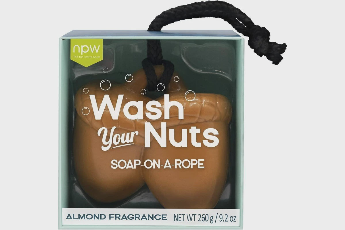 Wash your nuts soap on a rope will brighten your day and maybe your nuts as well. Shaped like large Acorns falling from the tree, who doesn't need to wash their nuts!